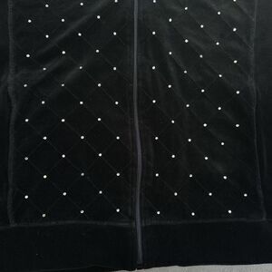 * Features a rich black velour body with a quilted pattern and rhinestone embellishments on the front panels for sparkle.