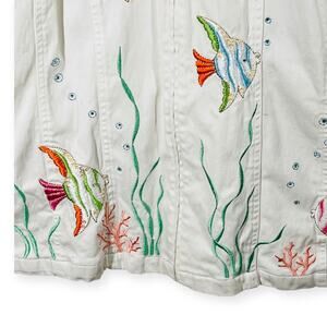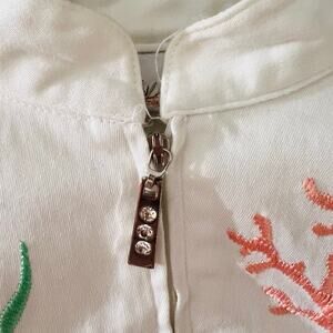 Quacker Factory Jacket Womens 2X Embroidered Tropical Fish Reef Zip Cotton White