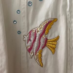 Beautiful embroidered tropical fish jacket, women’s 2X. Lightweight, comfortable, and full of personality. In excellent condition—perfect for coastal style.