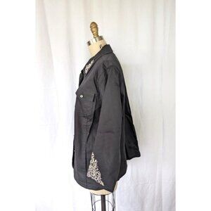 Quacker Factory Jacket Women's Size Large Embroidered Canvas Button Down Black