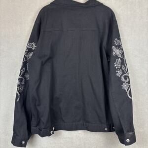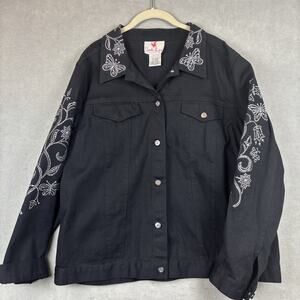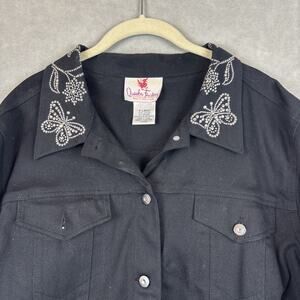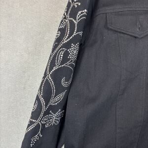 Quacker Factory Jacket Womens XL Black Denim Rhinestone Studded 90’s Bling Flora