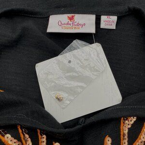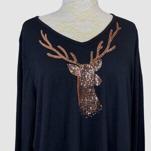 Quacker Factory Jeanne Bice Long Sleeve Black Tee Copper Sequin Deer Tee NWT XL