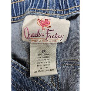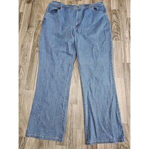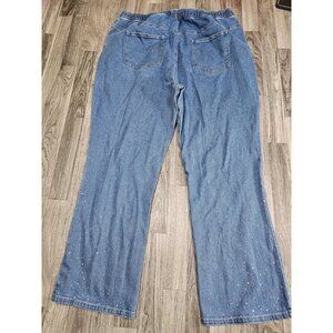 Quacker Factory Jeans Womens 2X Blue Wide Leg Rhinestone Embellished Hem Stretch