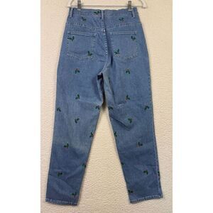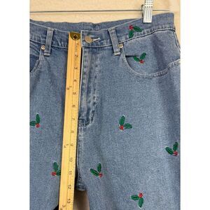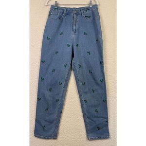 Quacker Factory Jeans Womens Medium Blue Embroider Holly Mistletoe Mom Denim 10