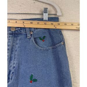 Quacker Factory Jeans Womens Medium (28x28) Blue Embroidered Holly Mistletoe Mom Denim