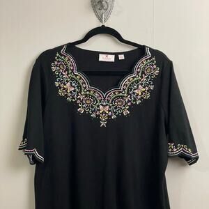 Quacker Factory L short sleeve blouse cottagecore butterfly floral boho goth