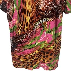 Quacker Factory Leopard and Floral Print Rhinestone V-Neck Blouse Size S