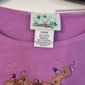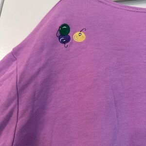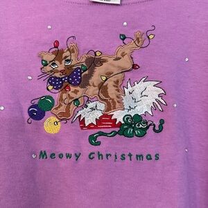 Celebrate the holidays with this charming purple long sleeve tee featuring a festive 'Meowy Christmas' design. Perfect for adding a playful touch to your winter wardrobe.