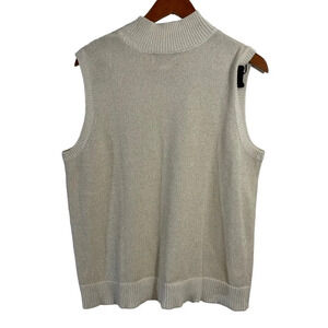 Quacker Factory Metallic Sweater Tank Top XL Cream Gold Mock Neck Holiday Knit
