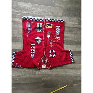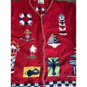 Quacker Factory Nautical Knit Sweater button Cardigan Red L lighthouse boat