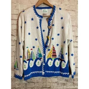 Quacker Factory Nautical Sweater Womens Medium Summer Sailboats Ramie Knit