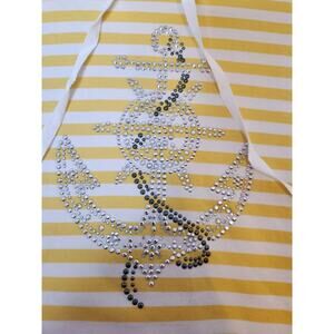 Quacker Factory Nautical Tunic Top Womens S Yellow White Sequins Anchor Beach