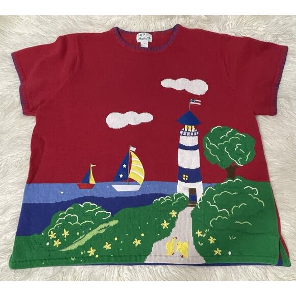 Quacker Factory Novelty short sleeve pullover sweater 3X lighthouse ocean