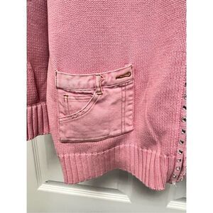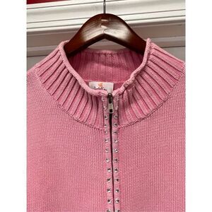 Quacker Factory Pink Blue Jeans Crystal Embellished Zip Up Cardigan Sweater sz 2