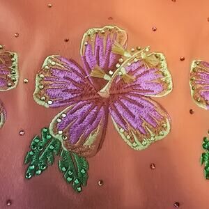 Quacker Factory Pink Embroidered Floral Chrystal Accents Women's Top L