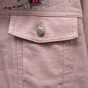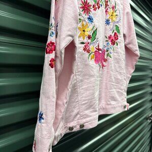 Quacker Factory Pink Linen Blend Embroidered Butterfly & Floral Jacket Sz Medium