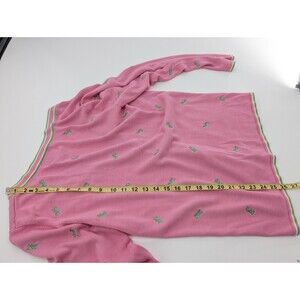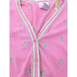 Quacker Factory Pink Silk Cotton Green Grasshoppers Cardigan Sweater Size Small