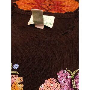 Quacker Factory Plus Size Black Sweater Colorful Sequin Bead Heart. Size