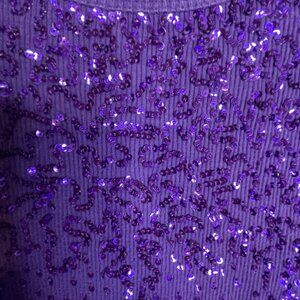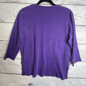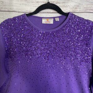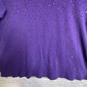 Quacker Factory Purple Ribbed Sweater Size M Sequins Knit Crew Neck 3/4 Sleeve