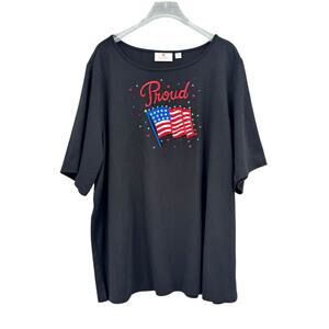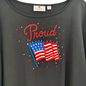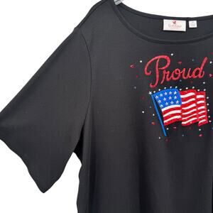 Quacker Factory QVC Proud Americana Flag Embroidered Sparkle Short Sleeve Top