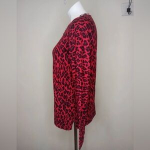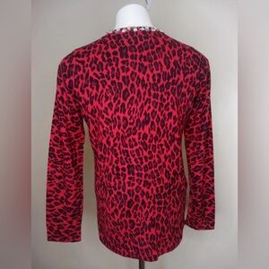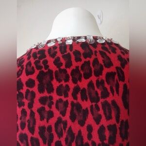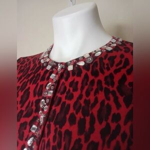 Quacker Factory Red Leopard Print Cardigan XXS Jeweled Trim