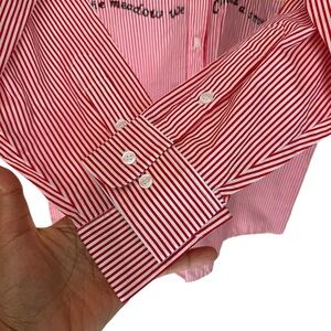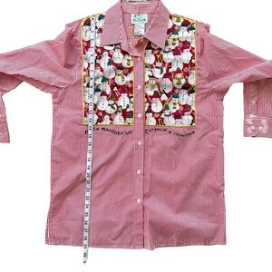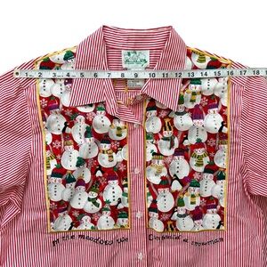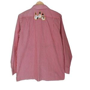 Quacker Factory Red Striped Button Up Shirt Snowmen Embellish Winter Size: M
