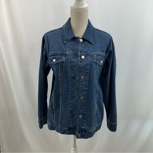 Quacker Factory Rhinestone Denim Jacket Women’s Small Blue Stretch Pockets