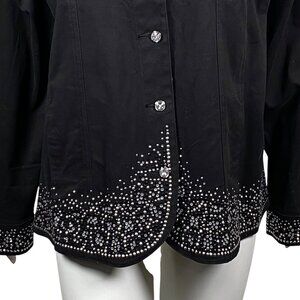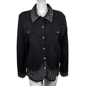 Quacker Factory Sequin Denim Jacket Womens XL Buttons Long Sleeve Stretch Black