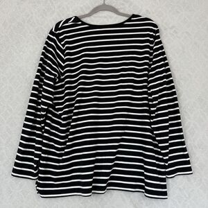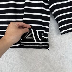 * Black & white horizontal stripe cotton blend knit long sleeve shirt