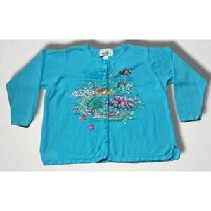Quacker Factory Sequined Beach Motif Cardigan Blue Size 2X