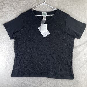 Quacker Factory Shirt Top Womens 2X Beaded QVC Black V-Neck Short Sleeve