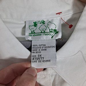 A stylish Quacker Factory casual shirt for women, size 3X. Features an embroidered rooster design, colorful buttons up the front, and a pocket. Made from quality cotton.