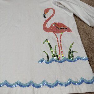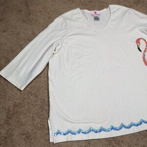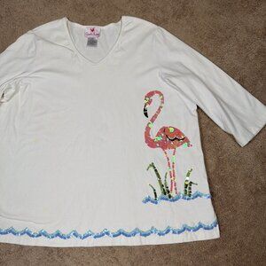 Quacker Factory Shirt Women 3X White Sequined Flamingo Beach Vintage Y2K 90s QVC