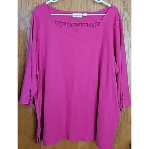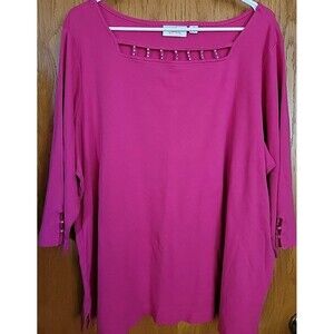 Quacker Factory Shirt Womens 2X Embellished 3/4 SLV Pullover Bling Top Cut Out