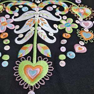• Quacker Factory Shirt Womens XL Black Cropped Sleeve Embroidered Sequined VNeck