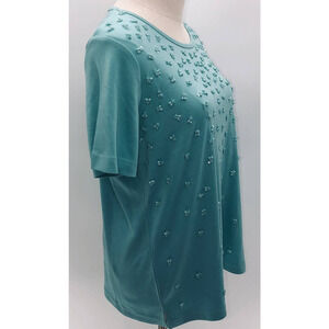 Quacker Factory Short Sleeve Sequin Detailed Shirt- M
