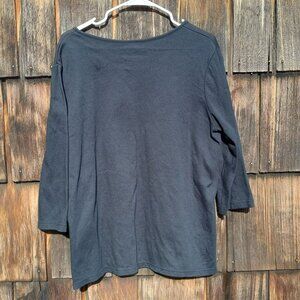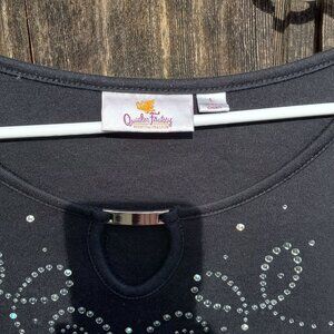 Quacker Factory Size LG Key Hole Rhinestone Swirls Gray Tunic T-Shirt Blouse