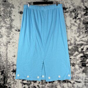 Quacker Factory Skirt Womens Size 2X Blue Embroidered Floral Blue Rear Split Hem