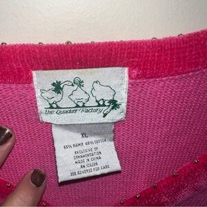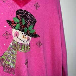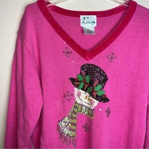 Quacker Factory Snowman V-neck Sweater Pink Beaded Embellished Size XL