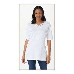 Quacker Factory Sparkle Split Neck Tunic Top White Large A392178