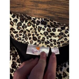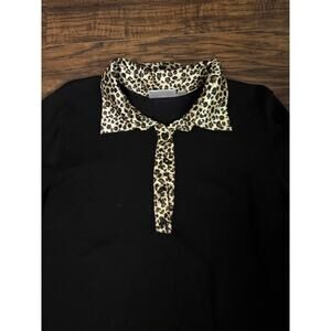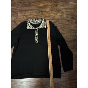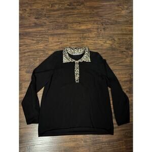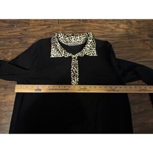 In good condition! The Quacker Factory Sweater Blouse is a stylish and comfortable pullover made from black cotton with an animal print pattern. This long sleeve blouse features a collared neckline, regular fit, and stretch material for added comfort and convenience. Perfect for casual or travel occasions, this XL size sweater is designed for women who want a unique and eye-catching addition to their wardrobe. With its animal print theme and Quacker Factory brand, this sweater is a versatile and fashionable choice for any woman looking to make a statement.