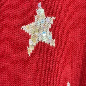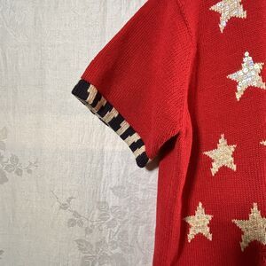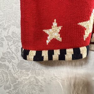 Quacker Factory Sweater Large Red Star Stripe Sequin Flag Cardigan Short Sleeve