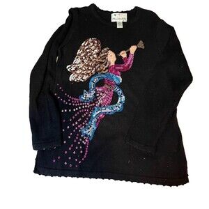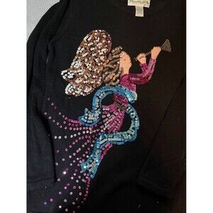 Quacker Factory Sweater M Black Sequin Angel Trumpet Cozycore Christmas Top