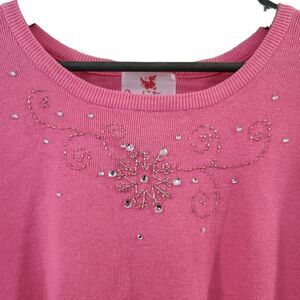 Quacker Factory Sweater Pink Sz XL Embellished Beaded Rhinestones
