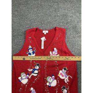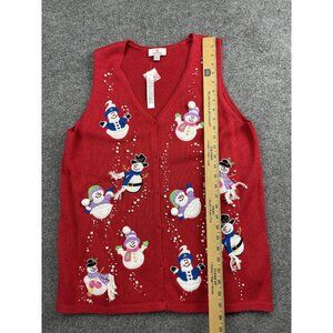 Quacker Factory Sweater Vest Womens Large Red Snowman Christmas Embellished