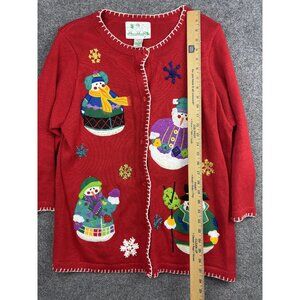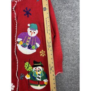 Quacker Factory Sweater Womens L Red Snowman Ugly Christmas Applique A69025