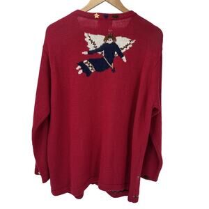Vintage Quacker Factory Cardigan Sweater "Believe in Angels" Size Large Embroidered Red Button Up Long Sleeves Knit Christmas Holiday Winter