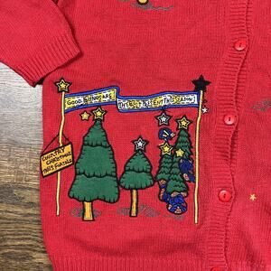 Quacker Factory Sweater Womens Large Red Christmas Tree Santa Cardigan Ugly