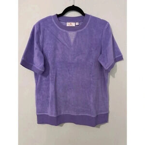 Quacker Factory Sweater Women’s Medium Purple Short Sleeve Terry Cloth Studded