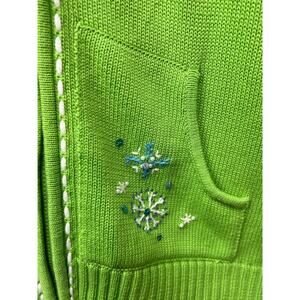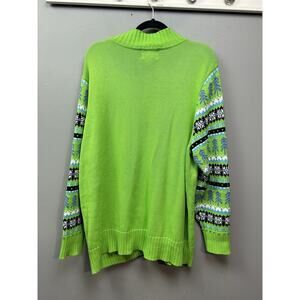 Quacker Factory Sweater Womens Size 2X Green Striped Winter Pom Poms Full zip